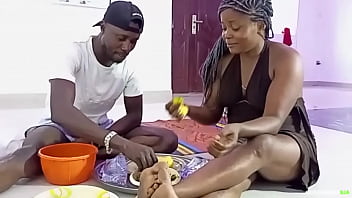 Porno in bucatarie cu bruneta siliconata care face prajituri